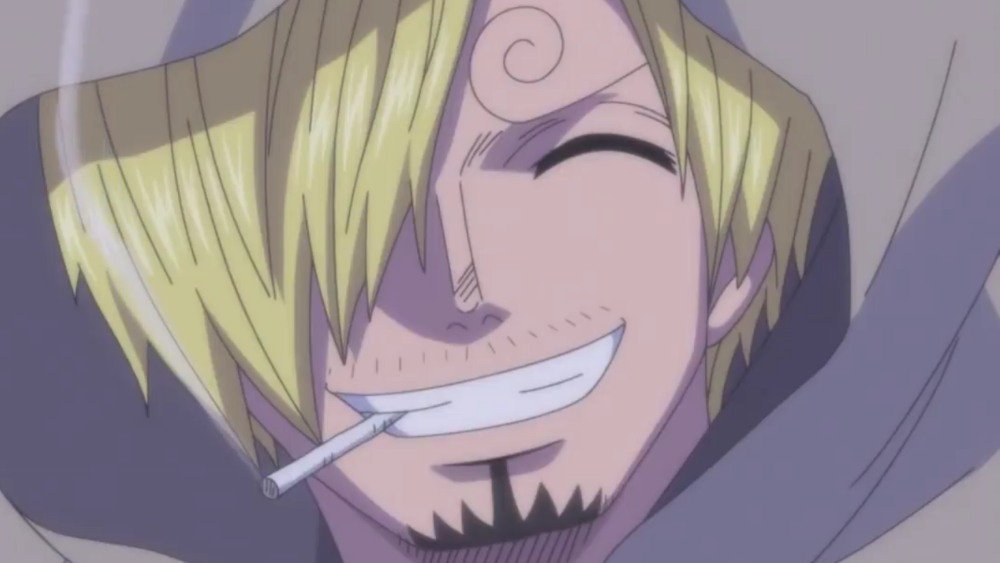 It comes from the mouth of a pleasant-looking, handsome blond in an equally handsome white suit. His smile is wide, bright; despite the weird curly eyebrow and the hair hiding half his face, he's radiant. Your heart is pounding. He holds a cigarette in his teeth, grins around it like it's barely there. You feel wonderful and terrible - wonderful that he's smiling at you, that he's such a gentle soul, so sweet, and just having him speak to you feels like a gift, but your stomach twists. Why is he so nice? Why?